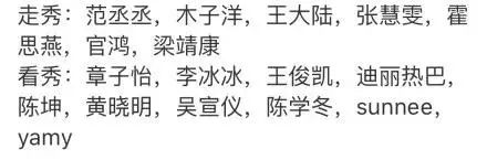之前曝光的走秀和看秀的明星名单
