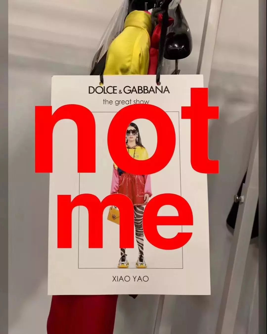 中国模特罢演DG秀,并模仿Stefano Gabbana的“澄清”图,在自己定妆照上写上了NOT ME