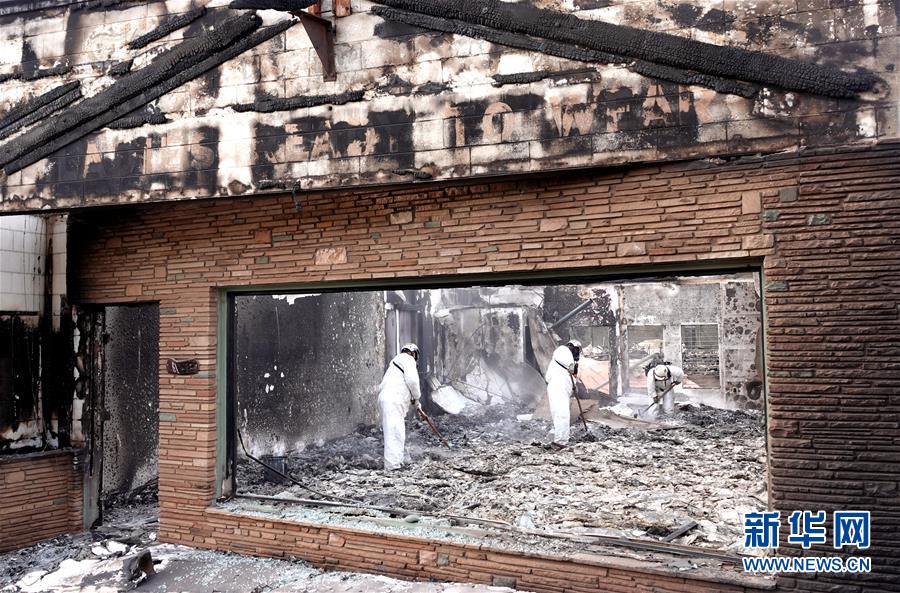 美国国家气象局预报,加州北部地区将很快迎来降雨。雨水将有助于缓解火情并改善空气质量,但对“坎普”灾区搜救工作和灾民安置工作会产生不利影响,并可能引发山洪和泥石流。11月20日,在美国加利福尼亚州比尤特县天堂镇,救援人员在山火废墟中工作。 新华社记者 吴晓凌 摄
