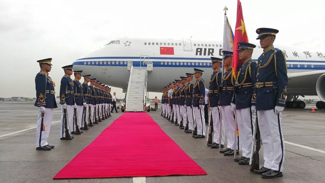 △菲律宾总统府前草坪欢迎仪式的现场。(央视记者黄京辉拍摄)