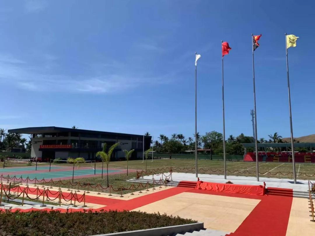 △巴新的欢迎仪式在议会大厦前广场举行。(央视记者张晓鹏拍摄)