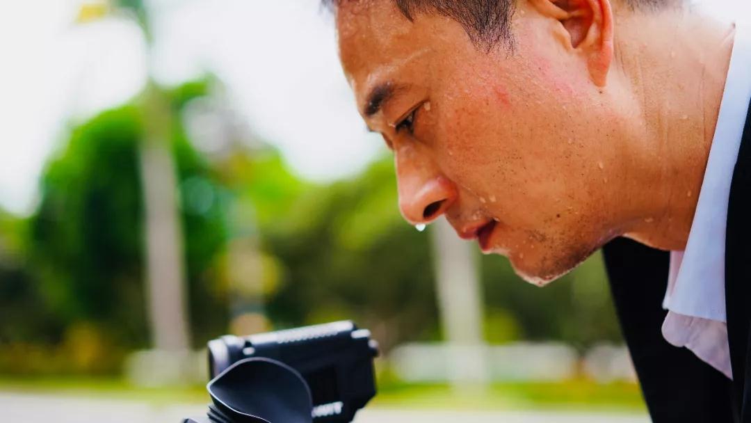 △央视记者黄耀祖在海面操作航拍器。许多精美的航拍画面出自他之手。(央视记者黄铮铮拍摄)