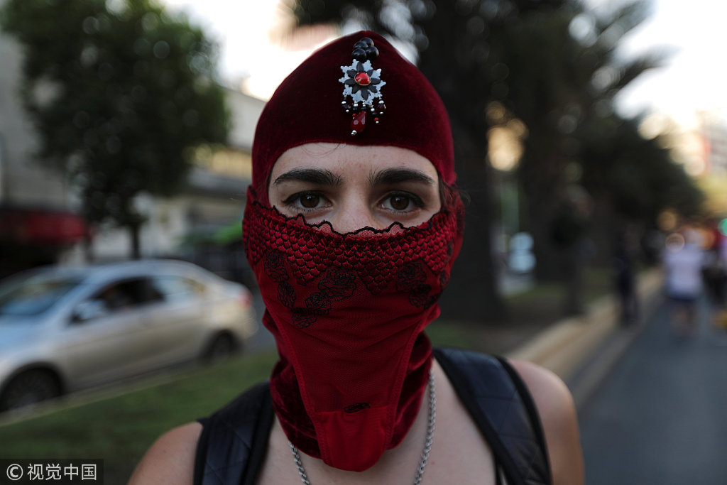 当地时间2018年11月22日,智利圣地亚哥,国际消除对妇女暴力日前夕,妇女参加反暴力游行。
