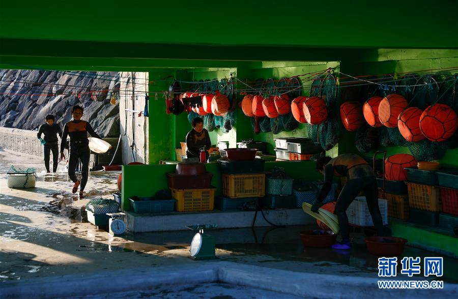 11月23日,海女们在韩国济州岛的一处海岸附近结束一天的作业准备回家。新华社记者 王婧嫱 摄