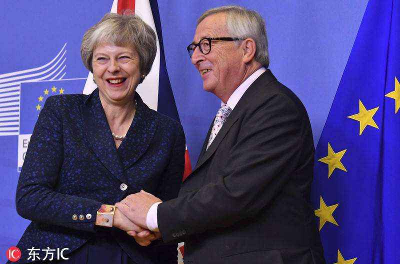 当地时间2018年11月24日,比利时布鲁塞尔,英国首相特蕾莎-梅会见欧盟委员会主席容克,讨论退欧协议草案。 特雷莎-梅当天赴布鲁塞尔与欧盟敲定“脱欧”协议正式版本,除英国外的27个欧盟成员国将于25日召开特别峰会,就协议进行表决。