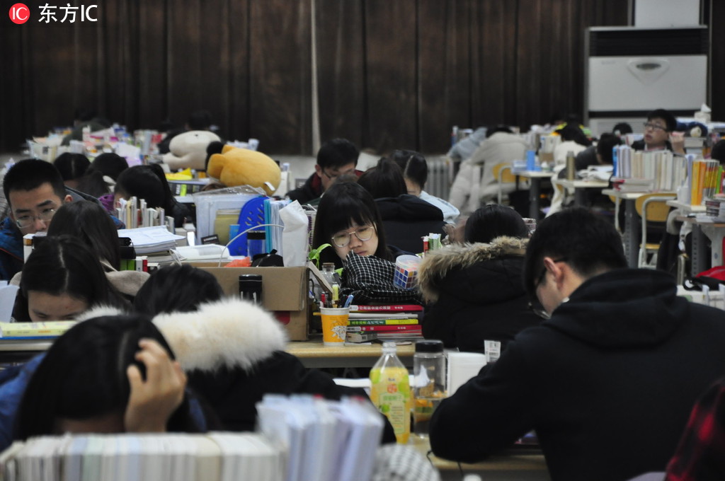 11月23日,距离2019年全国硕士研究生招生考试还有不足一个月的时间,在山东德州学院图书馆自习室、学院考研自习室、走廊内、楼梯口等地,大学生正在挑灯夜读,认真备考,进行最后的冲刺。据悉,2019年全国硕士研究生招生考试将于2018年12月22日至24日举行。(来源:东方IC)