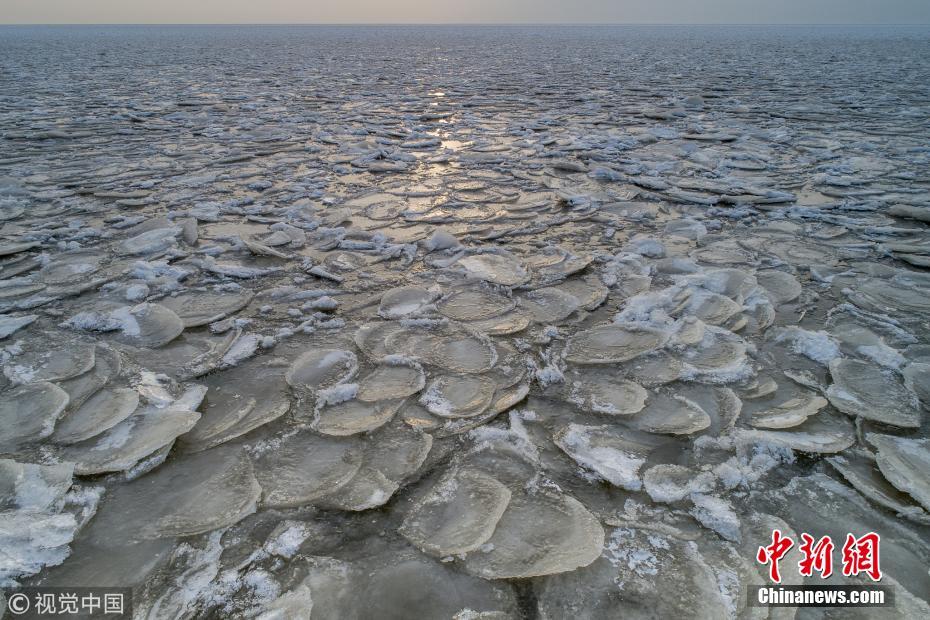 航拍中俄界湖兴凯湖封冻 如同浪花被凝固