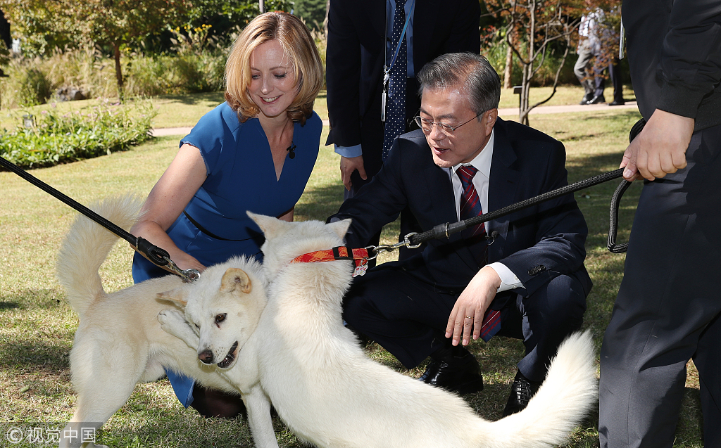 金正恩送给韩国的丰山犬生宝宝,文在寅夫妇逗狗崽