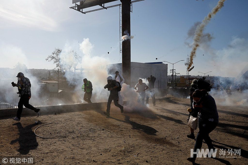 当地时间2018年11月25日,美国圣地亚哥,美国士兵在南部的圣思多罗过境处巡逻。当日,数百名中美洲移民试图冲破墨西哥提华纳与美国圣地亚哥间的一处口岸,进入美国申请庇护。美方封闭了此处入境口岸的双向道路和人行天桥。