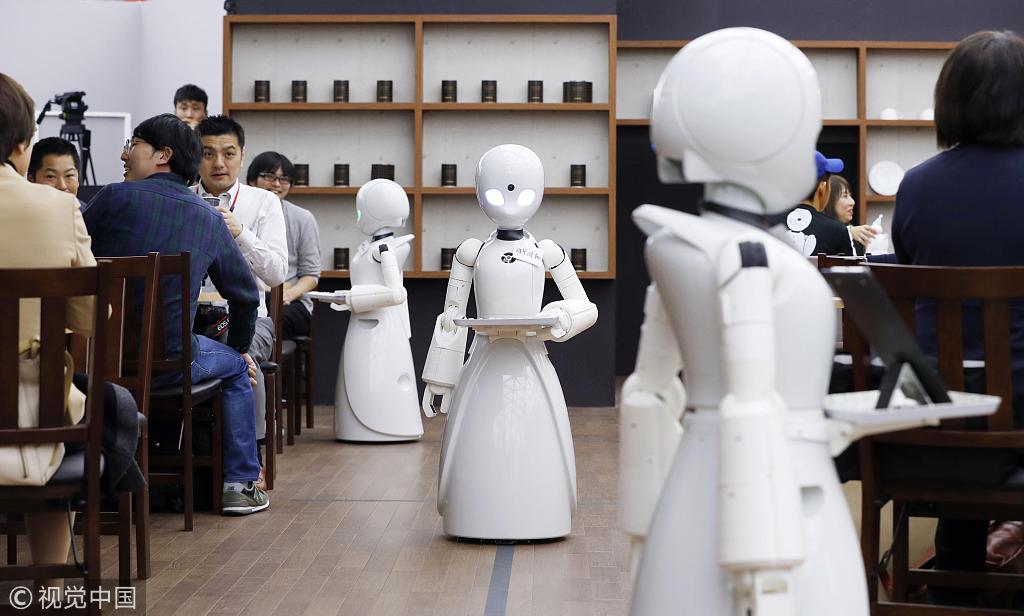 机器人服务员现身日本咖啡厅 持剪刀剪彩