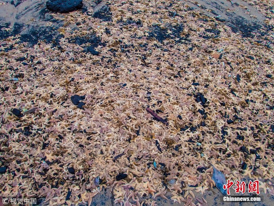 11月26日讯(具体拍摄时间不详),英国林肯郡,几天暴风雨天气过后,成千上万的海星被冲上了梅布尔索普的海滩。图片来源:视觉中国