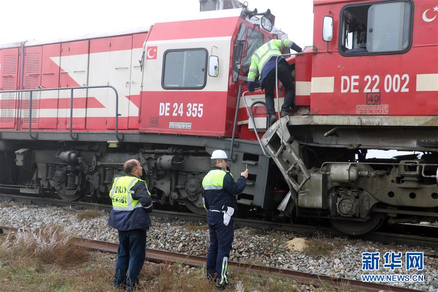 这是11月26日在土耳其锡瓦斯省拍摄的火车相撞事故现场。 土耳其两列火车26日午间在该国中部锡瓦斯省相撞,造成至少15人受伤。 新华社发