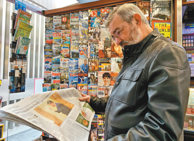 11月27日,当地读者在报刊亭阅读《阿贝赛报》上刊登的习近平主席署名文章。 本报记者 韩晓明摄
