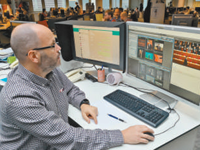 26日22时30分,马德里郊区托雷洪—德阿尔多斯的罗托马德里印务中心。早已守候多时的图片编辑安东尼奥·贝塞诺收到了从编辑部传来的27日报纸电子版,马上对版面图片和色泽比对进行调整,力求尽善尽美。