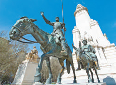 马德里西班牙广场上的堂吉诃德雕像。 人民视觉