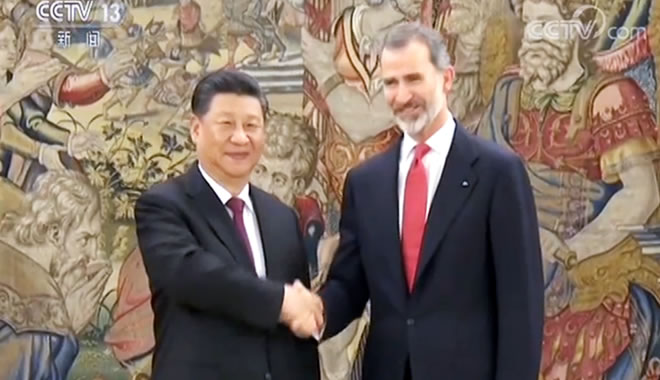 习近平表示,很高兴应费利佩六世国王邀请到访美丽的西班牙。2005年中西建立全面战略伙伴关系以来,两国关系水平不断提升,政治互信日益增强,合作领域不断拓展,民间交往更加密切。中西关系正处在历史最好时期。我对中西关系发展前景充满信心。这次访问西班牙是我连任中国国家主席后首次访问欧洲,也是这次欧洲拉美之行第一站,希望通过此访巩固两国友谊,提升合作水平,使中西关系行稳致远。