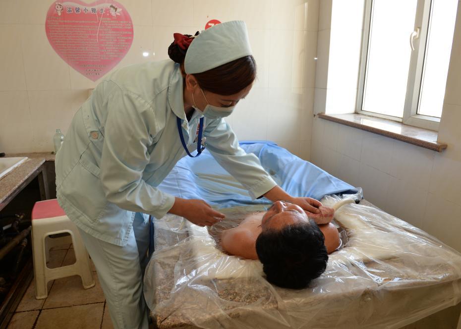 青海省藏医院的曼尧(药浴助理)正在进行药浴操作和护理。关确才让 摄  中国非物质文化遗产保护中心供图