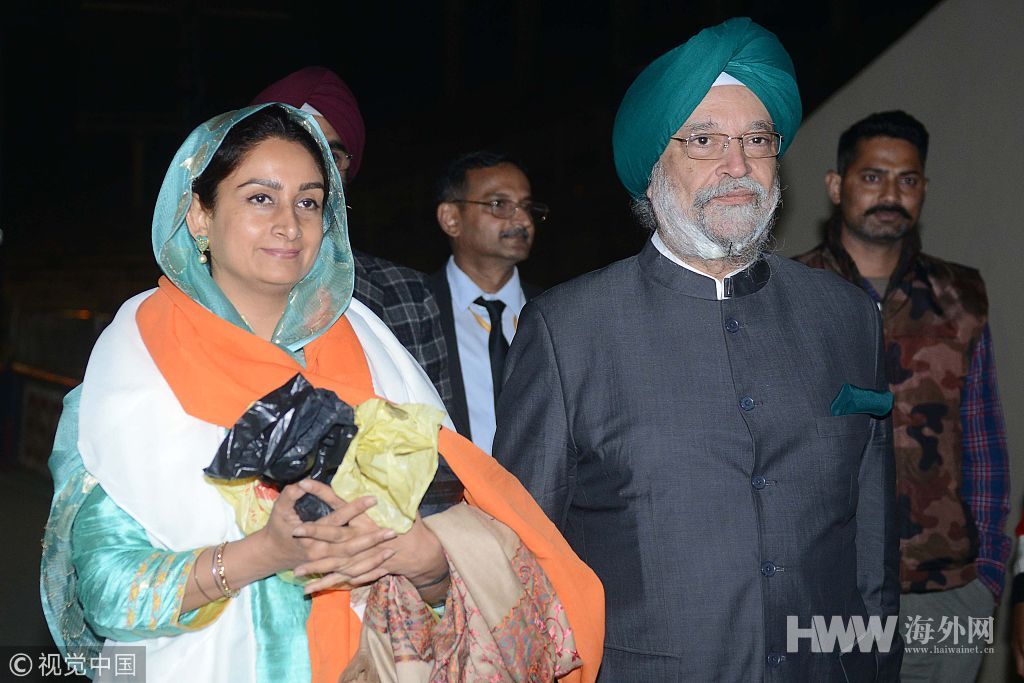 这条大约5公里长的走廊旨在连接巴基斯坦卡尔塔普尔神庙和印度德拉巴巴纳纳克镇的锡克教圣地。图为巴基斯坦锡克教于当地时间2018年11月28日,印度阿姆利则,巴总理伊姆兰·汗当天为印巴“和平走廊”奠基,印度官员参加相关活动。