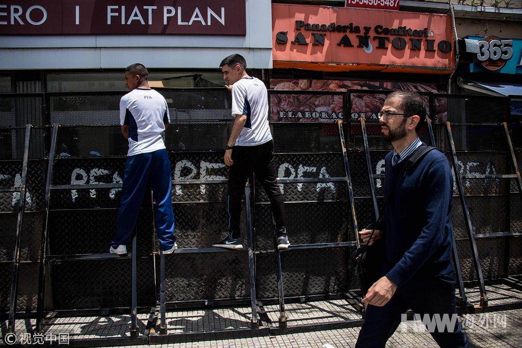 G20峰会即将召开 阿根廷警察沿街装栅栏加强安保
