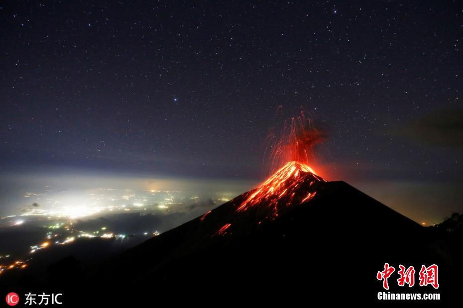 当地时间11月28日,危地马拉富埃戈火山喷发。据危地马拉国家减灾协调员称,富埃戈火山在11月28日平均每小时喷发7到10次。图片来源:东方IC