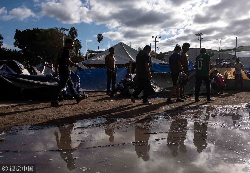 当地时间2018年11月28日,美墨边境地带,来自中美洲的移民在当地的临时避难所里栖身。