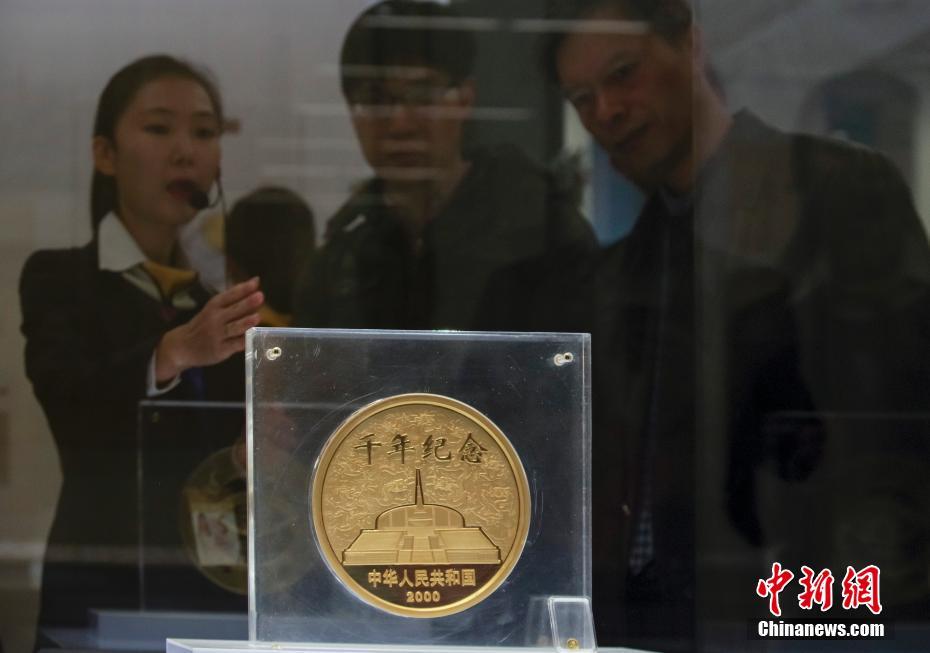 图为观众观看“10公斤千禧年纪念金币”。中新社记者  贾天勇 摄