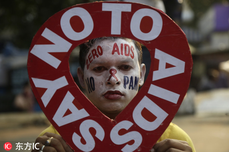 印度迎接世界艾滋病日 萌娃脸涂彩绘呼吁预防艾滋传播