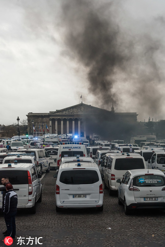 法国数百名救护车司机封堵巴黎协和广场和协和桥。