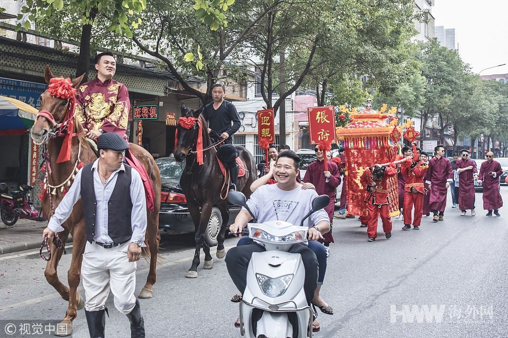 穿西服骑大马 广州新娘将中式婚礼“进行到底”