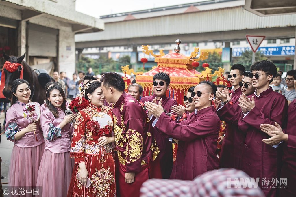 穿西服骑大马 广州新娘将中式婚礼“进行到底”