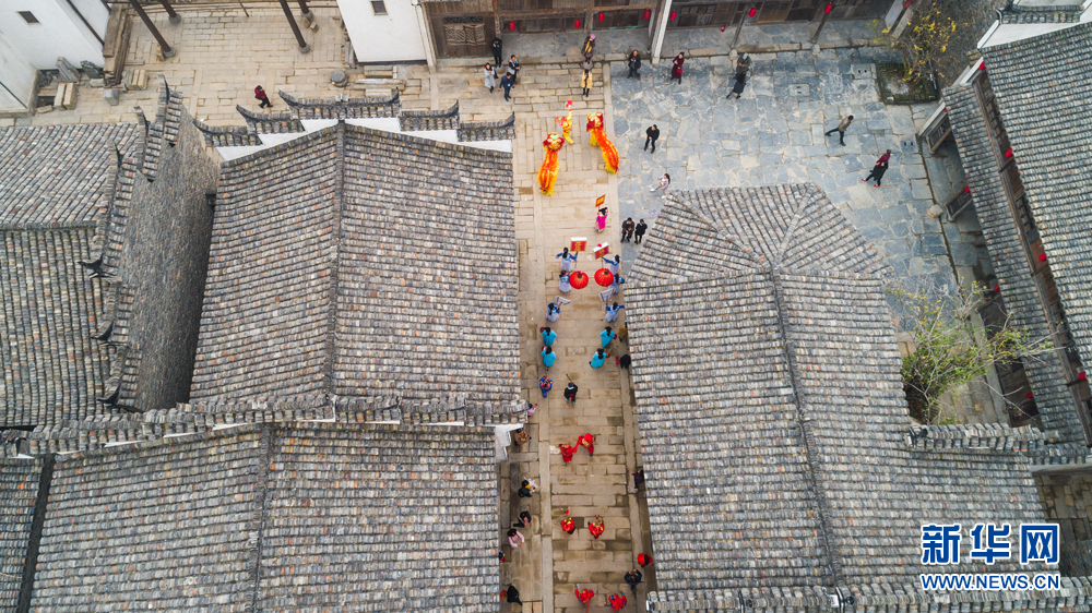 12月1日,铜陵市明塘文化艺术村举办民俗文化展演活动(无人机拍摄)。