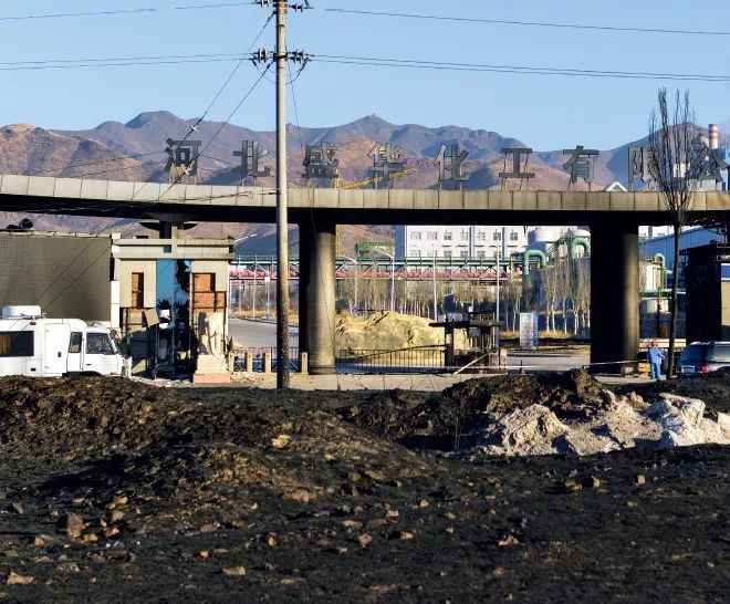 爆炸之后,河北盛华化工有限公司大门外及周边区域,一片焦黑。摄影/中国新闻周刊记者 董洁旭