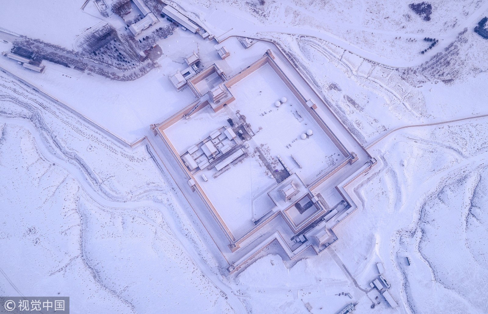 12月5日,甘肃嘉峪关长城降雪,景色如画。嘉峪关长城在嘉峪关市西南隅,关城四隅有角楼, 高两层, 形如碉堡。登关楼远望, 塞外风光尽收眼底。(来源:视觉中国)