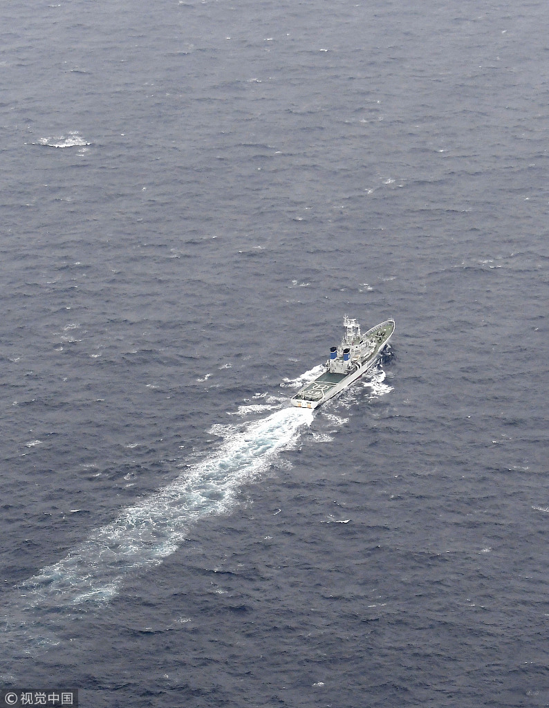 当地时间2018年12月6日,日本高知县,日本海岸警卫队巡逻船在事发海域搜寻。台媒称,一名美国陆战队官员说,两架美国陆战队飞机在日本外海遭遇“事故”,搜救行动正在进行中。