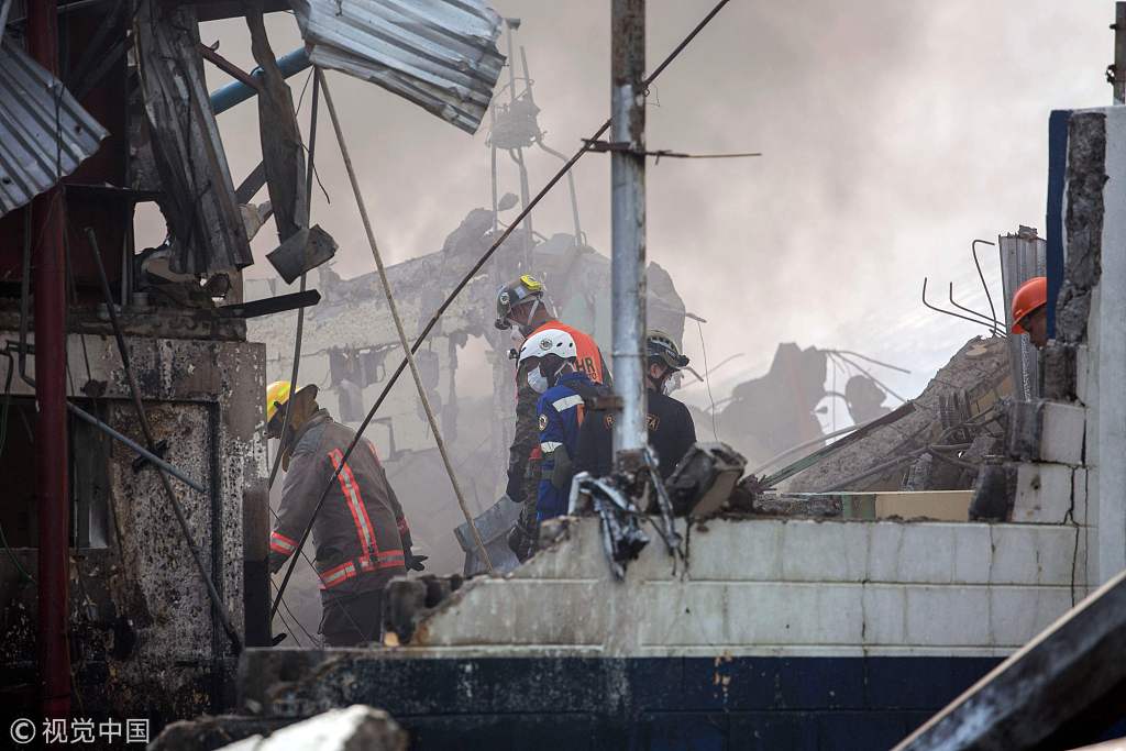 当地时间2018年12月5日,多米尼加圣多明各,当地一家塑料厂发生爆炸,救援人员正在搜寻遇难者。据报道共有3人在此次爆炸中丧生,并有多人受伤。