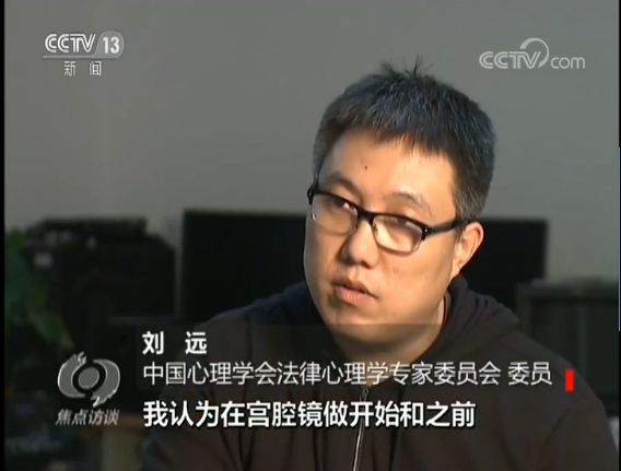 中国心理学会法律心理学专家委员会委员刘远说:“我认为在宫腔镜做开始和之前,这是两个阶段,之前用得寸进尺这种效应,一步一步让患者越来越多做检查和处置。但是一旦宫腔镜上了以后,我个人认为就不太一样了。除了心理以外,物理的控制是非常现实的,因为在面对医生和医院的时候患者基本在行为控制上是弱势的状态,这是我们不得不承认的,这种情况不光是这些患者,换了任何人,在那个位置上恐怕也要做后续治疗,听之任之了。”