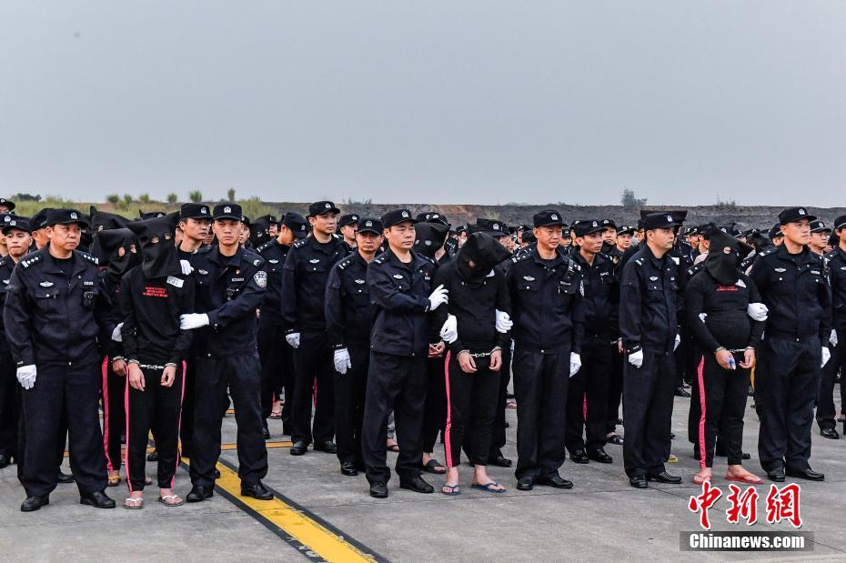 12月6日,233名冒充中国公检法机关工作人员实施电信网络诈骗犯罪的嫌疑人被中国警方押解回国。当日,广东省公安厅通报称,2018年10月,中国公安部派员率由广东警方组成的工作组赴柬埔寨开展打击电信网络诈骗犯罪执法合作。在中国驻柬埔寨大使馆的支持和协调下,经缜密侦查于11月26日联合柬警方展开统一收网行动,一举捣毁位于柬埔寨金边、茶胶等地的3个诈骗窝点,抓获犯罪嫌疑人233名,初步核破案件2000余起,涉案金额达6300余万元人民币。中新社记者 陈骥旻 摄