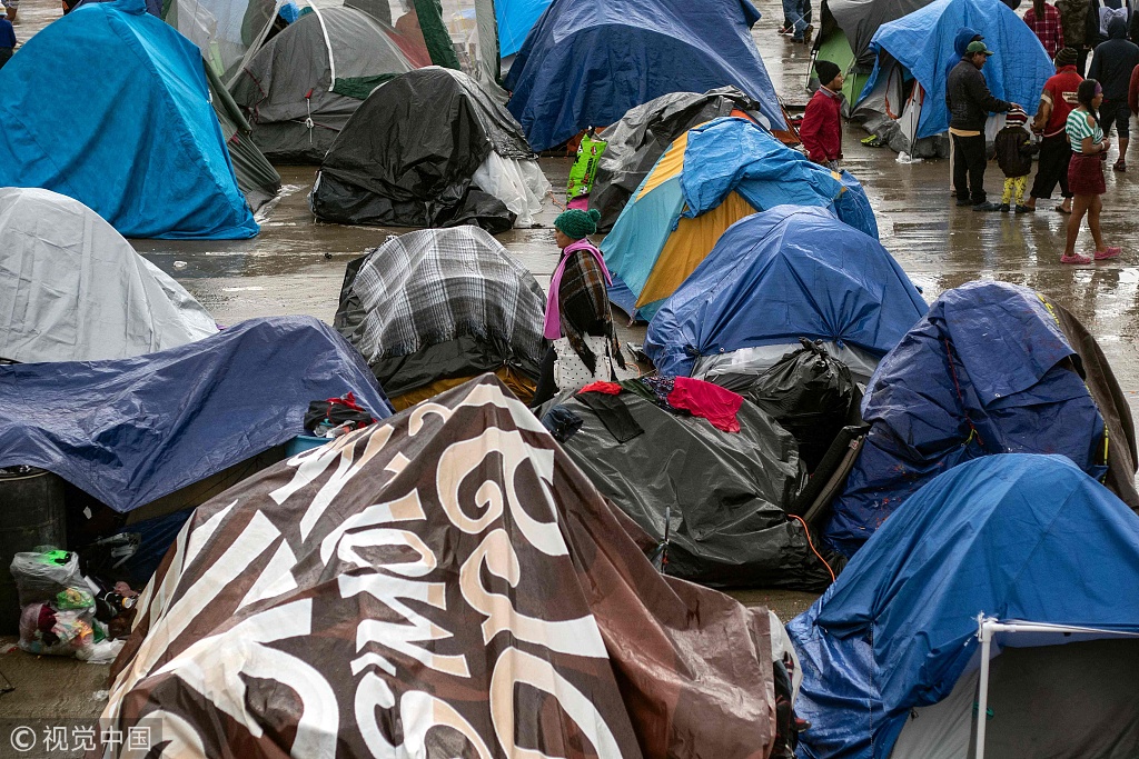 当地时间2018年12月6日,墨西哥蒂华纳,滞留美墨边境地带的中美洲移民在临时避难所。
