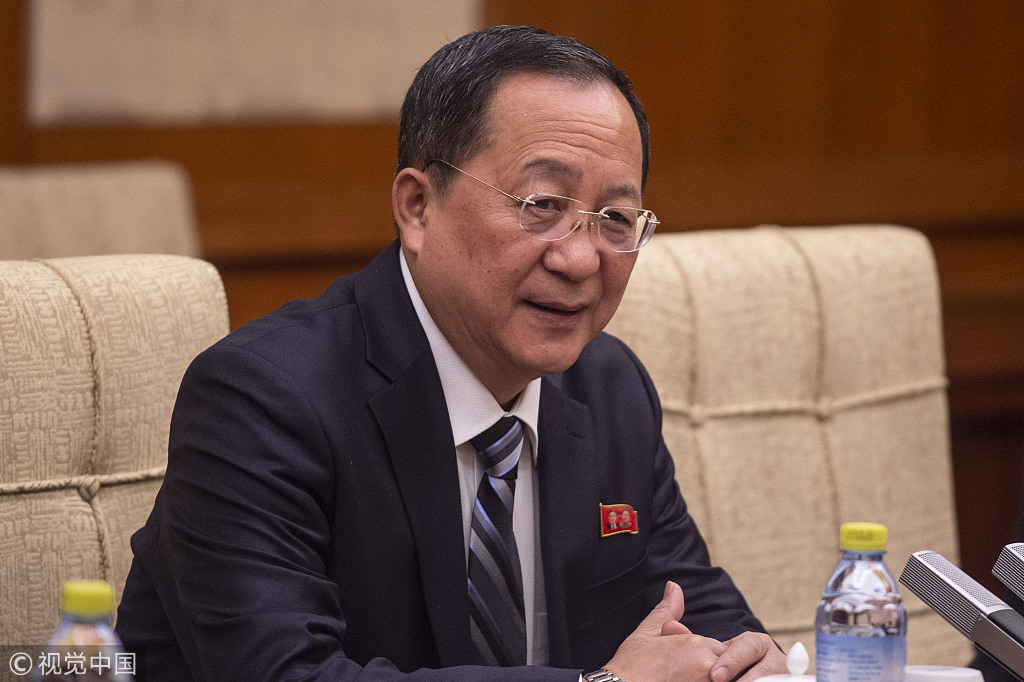 2018年12月7日,北京,王毅在钓鱼台国宾馆会见朝鲜外相李勇浩。