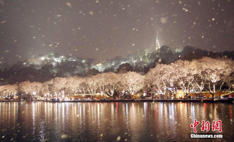 12月8日,杭州普遍降雪,众多游客前往断桥上拍摄雪景。当晚,杭州市气象台发布暴雪蓝色预警信号。中新社记者 毛建军 摄