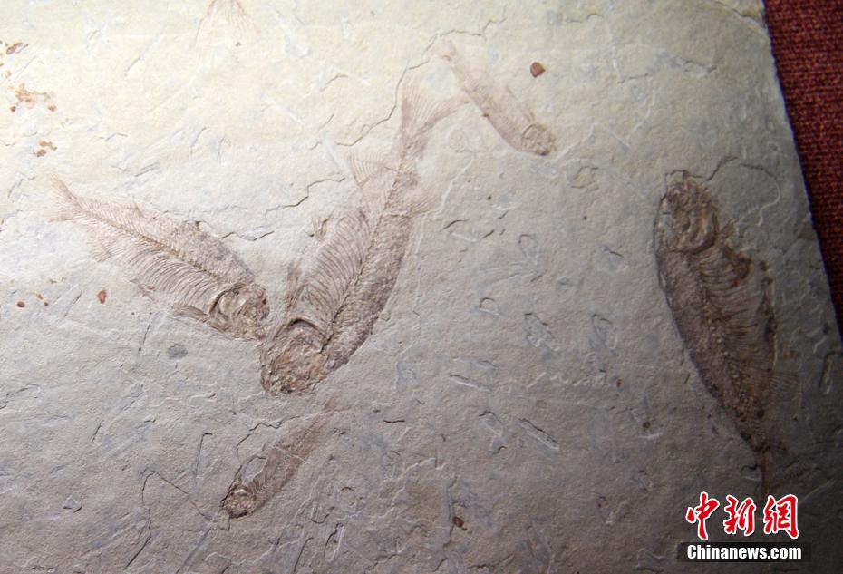博物馆内展出的珍贵狼鳍鱼化石。刘忠俊 摄