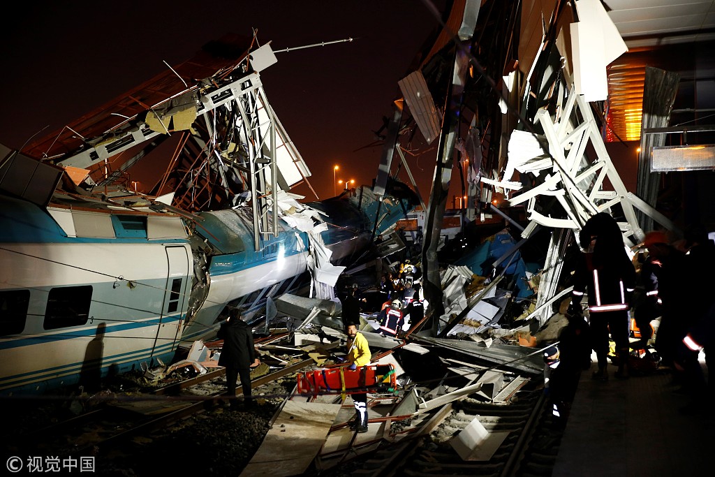 当地时间2018年12月13日,土耳其安卡拉,一辆高速列车与一辆调度机车相撞,死亡人数已上升至9人,另有47人受伤。当时这列高速列车正开往中部省份科尼亚。
