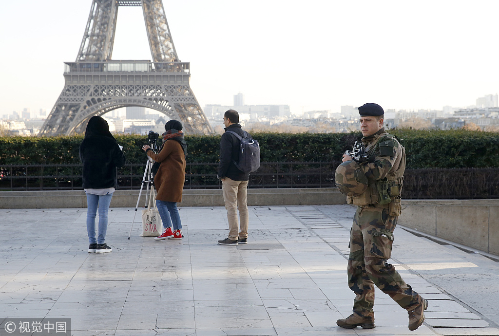 法国恐袭后安保升级 反恐士兵巡逻埃菲尔铁塔