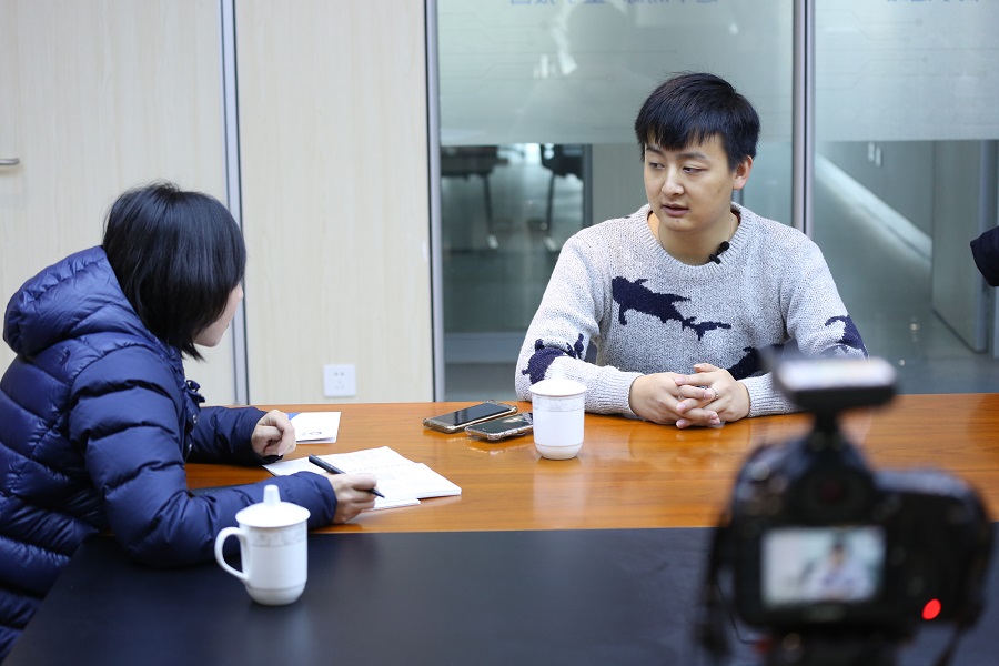 海外网12月13日电 12日,“2018中国新发现”全媒体大型采访系列活动走进安徽省合肥市高新区,海外网采访团参观安徽华米信息科技有限公司,并与合肥本源量子计算科技有限责任公司、科大讯飞股份有限公司、安徽博微太赫兹信息科技有限公司、合肥德铭电子有限公司的负责人和工作人员进行深入交流。采访团现场见识到哪些“黑科技”?图为本源量子计算公司执行董事兼量子测控部总监孔伟成接受海外网记者采访。(谢明 摄)