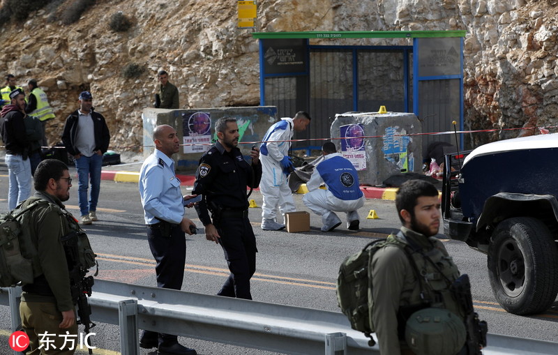 当地时间2018年12月13日,约旦河西岸定居点Givat Asaf,当地发生枪击事件。据以色列军方,有巴勒斯坦人持枪在Givat Asaf定居点朝着一个公交站开火,造成2名以色列人死亡,另有1人重伤。图片来源:东方IC