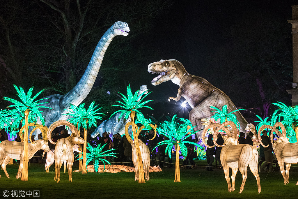 当地时间2018年12月12日,英国威尔特郡,当地一座伊丽莎白时代的庄园举行了一年一度的灯光秀,本次灯光秀展出了来自中国四川自贡的工匠们巧手用丝绸制作的数千盏灯笼。灯光秀亮点包括一座20米高的金字塔、史前恐龙和手持武器的中世纪骑士灯笼。这次灯光秀将对公众开放至1月6日。