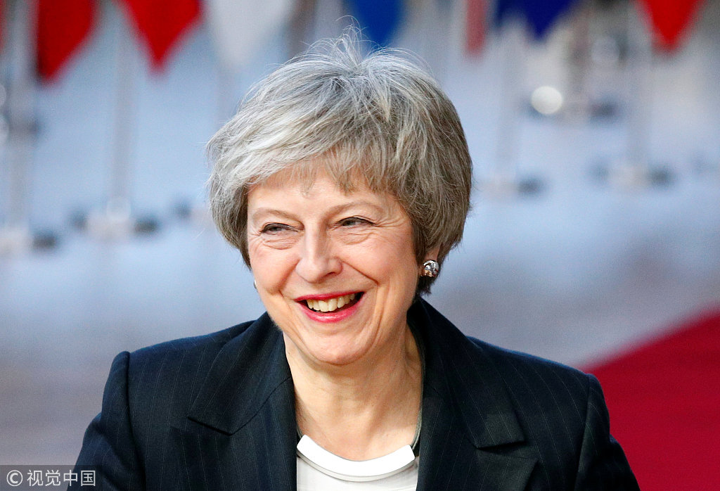 当地时间2018年12月13日,比利时布鲁塞尔,英国首相特蕾莎·梅赴布鲁塞尔出席欧盟峰会,为其“脱欧”协议寻求转机。据外媒报道,英国首相特蕾莎·梅确认,她将在2022年英国大选前辞职。