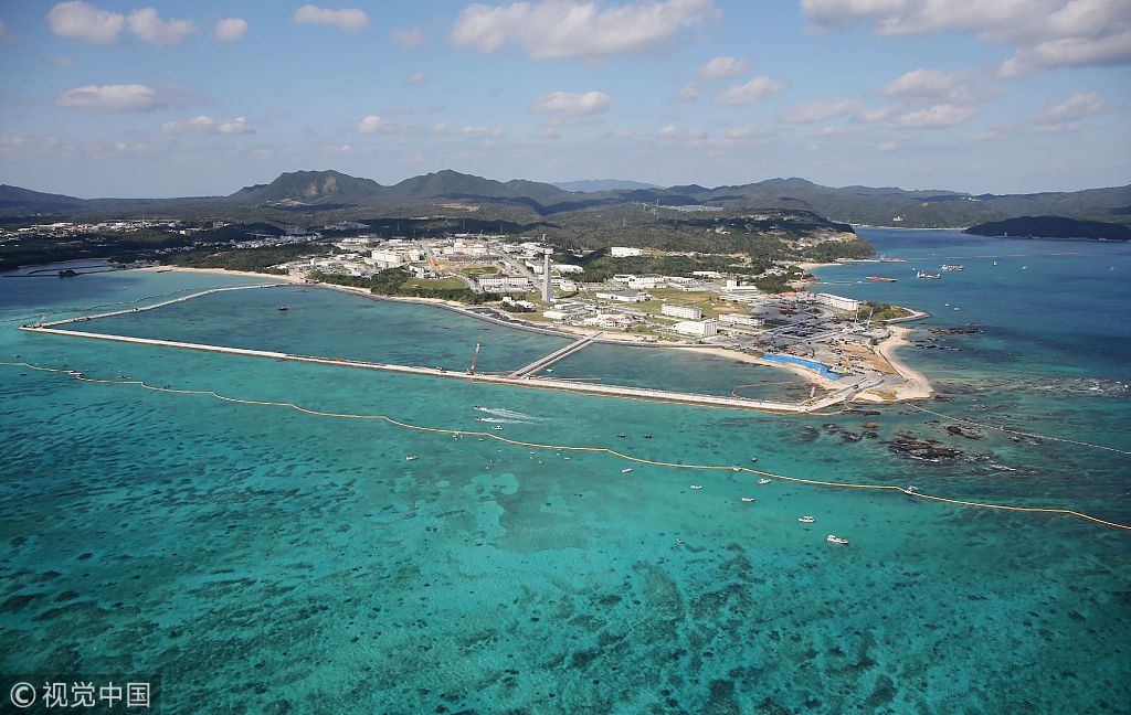 当地时间2018年12月14日,日本冲绳边野古名护市,美军普天间机场将搬迁至名护市边野古,填沙工程启动。 10月31日上午日本政府重新启动了驻日美军普天间机场搬迁到地名护市边野古沿岸的主体填海造陆的相关工程,并计划在年内填上沙土,全面开展建设作业。