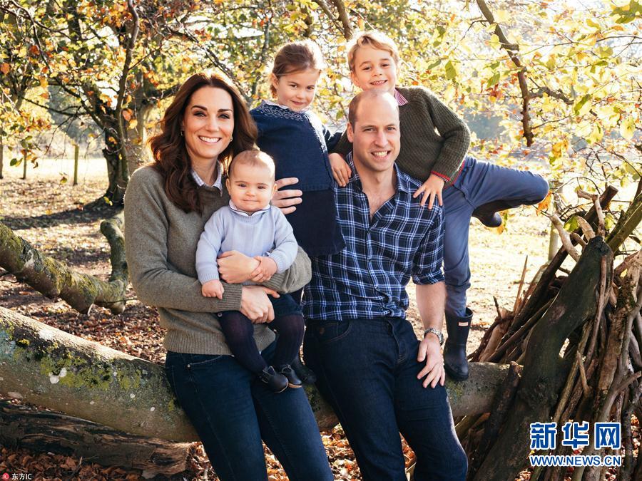 当地时间2018年12月14日,英国王室发布威廉王子一家的圣诞贺卡。