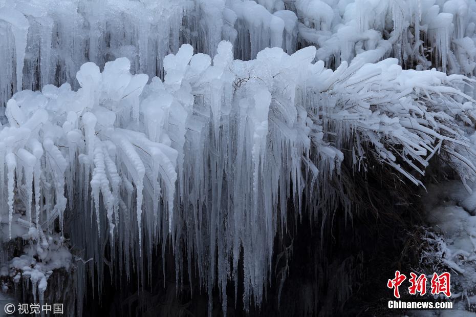 12月14日,北京门头沟区妙峰山镇多处冰瀑景观进入最佳观赏期,炭厂村神泉峡景区大面积人工冰瀑形成美丽的冰瀑景观,预计12月19日正式向游客开放。侯继庆 摄 图片来源:视觉中国